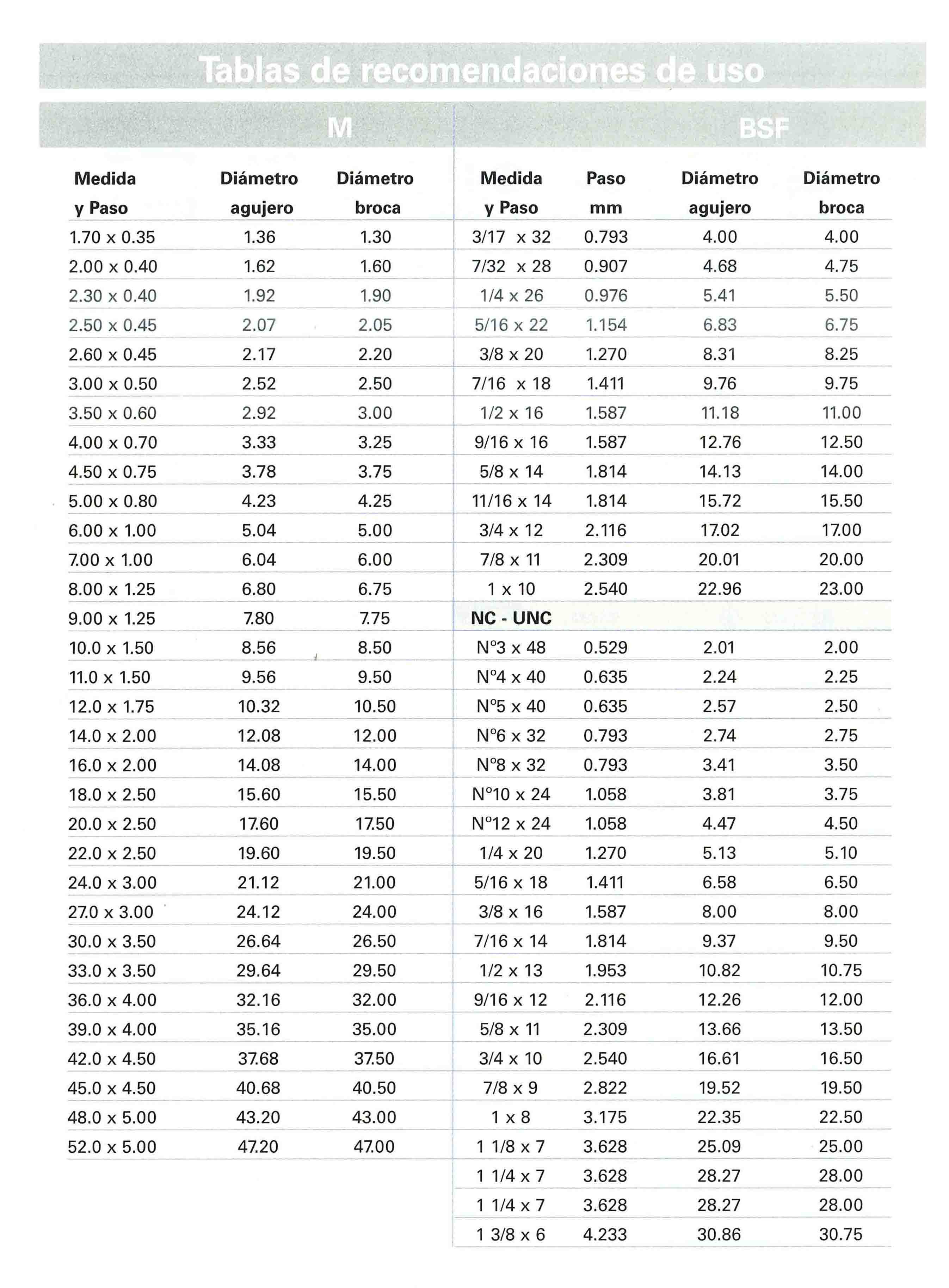 Tablas útiles